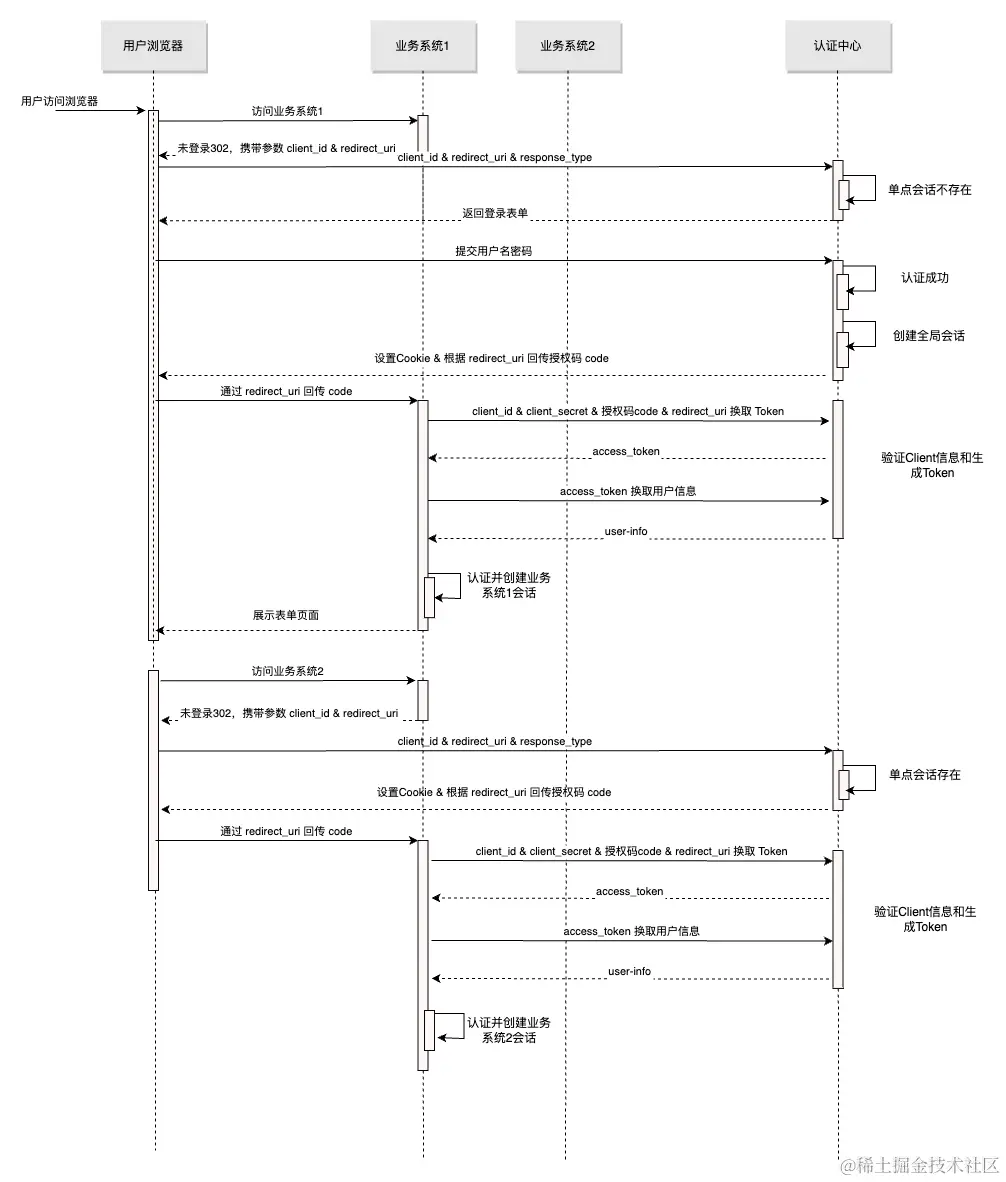 2. 两个业务系统之间的单点是借助统一认证中心完成,而非两个系统之间直接传递已登录用户信息。统一认证中心与业务系统间通过设计好的参数完成身份数据的传递。