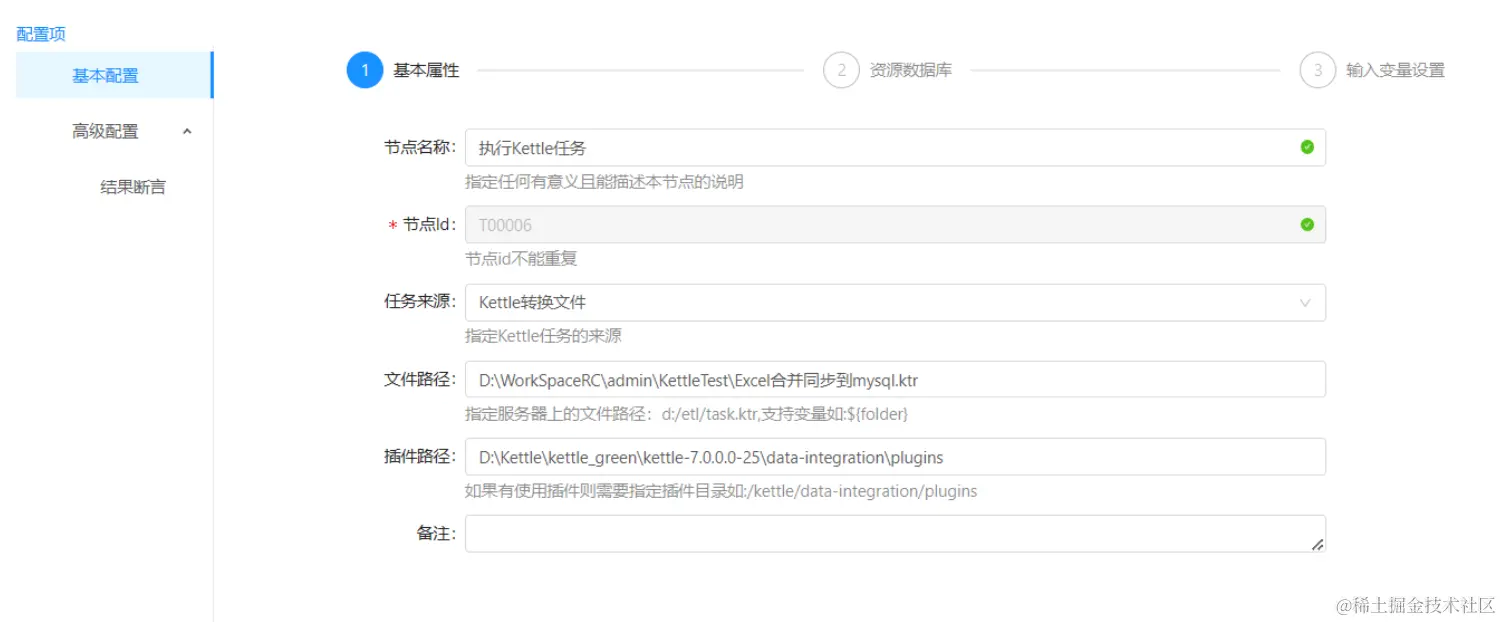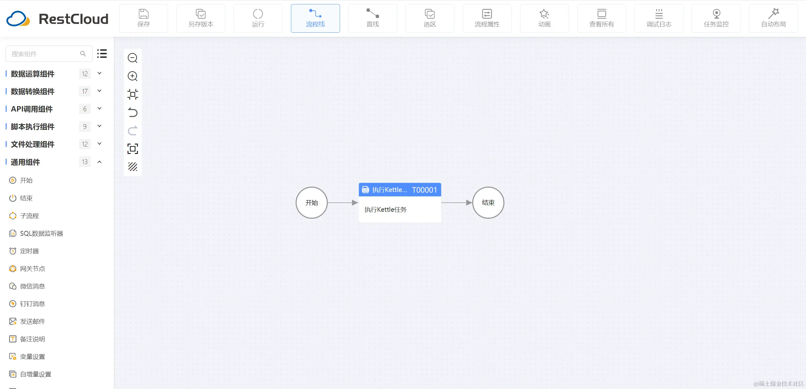 进入流程配置界面,拉取配置执行Kettle任务组件。