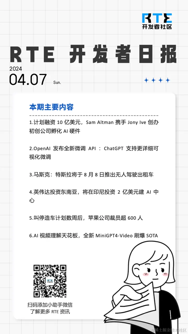 我们欢迎更多的小伙伴参与「RTE 开发者日报」内容的共创,感兴趣的朋友请通过开发者社区或公众号留言联系,记得报暗号「共创」。