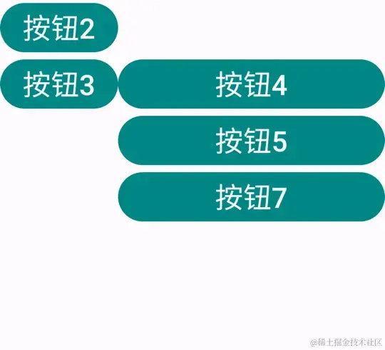 给其中的按钮 1 添加点 margin 和 padding 效果图如下: