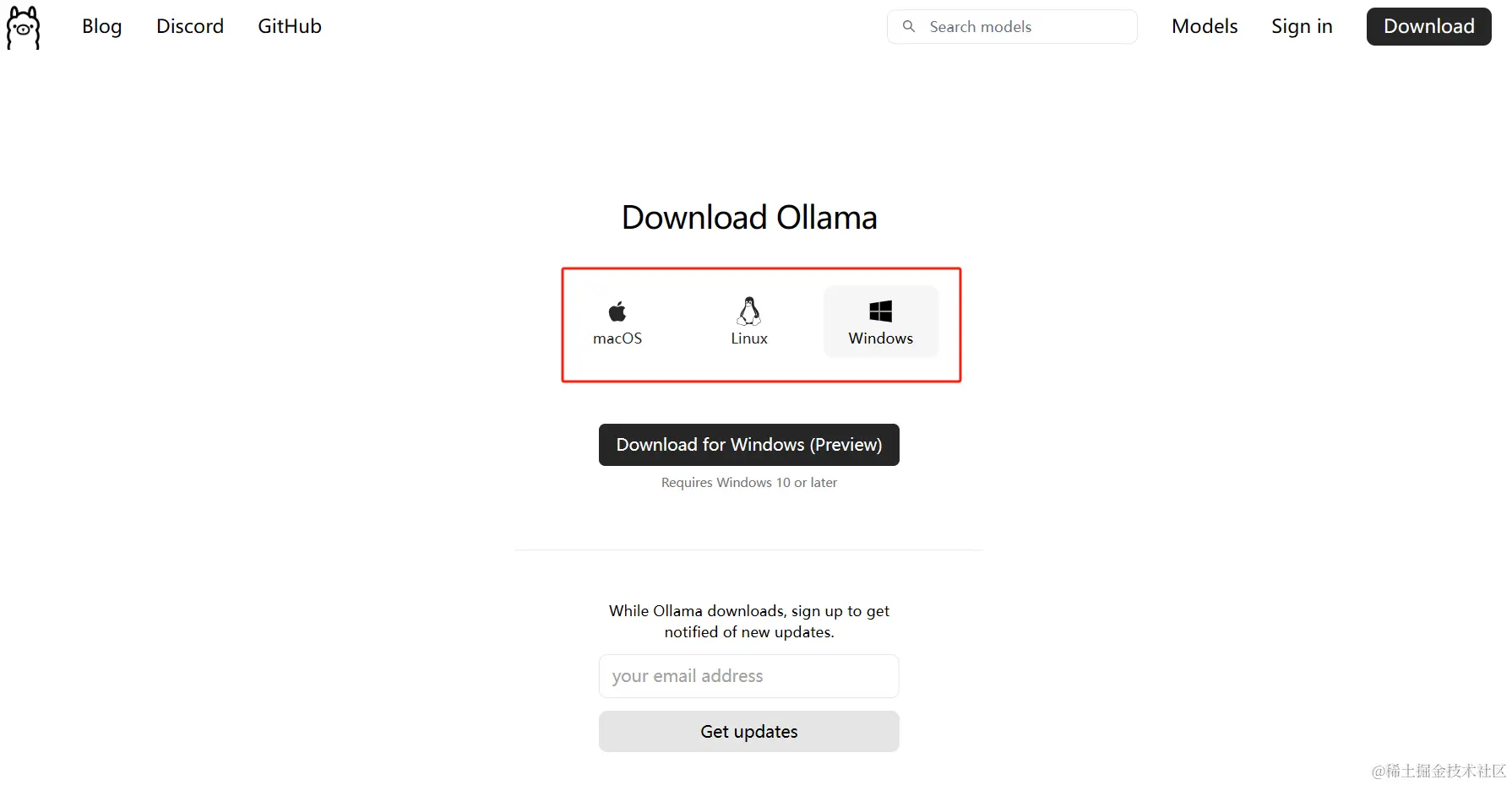 选择你需要的模型,然后在windows上打开一个cmd,执行,比如: