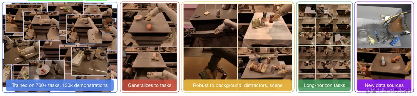 **机器人学习中的泛化问题。**尤其是在真实世界控制任务中,模型需要能够处理多样化的任务、环境和对象。