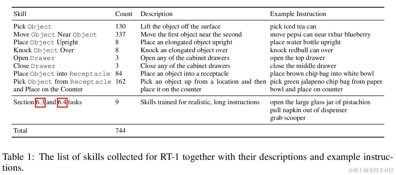 - RT-1使用了来自13个机器人的约130k个演示数据,这些数据在17个月的时间里收集,覆盖了700多个不同的任务指令。