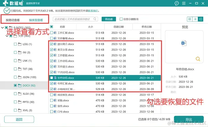 步骤3:等待扫描完成,用户可以选择按类型查看或按路径查看文件,并选择需要查看的相应文件,在右侧可直接进行勾选;