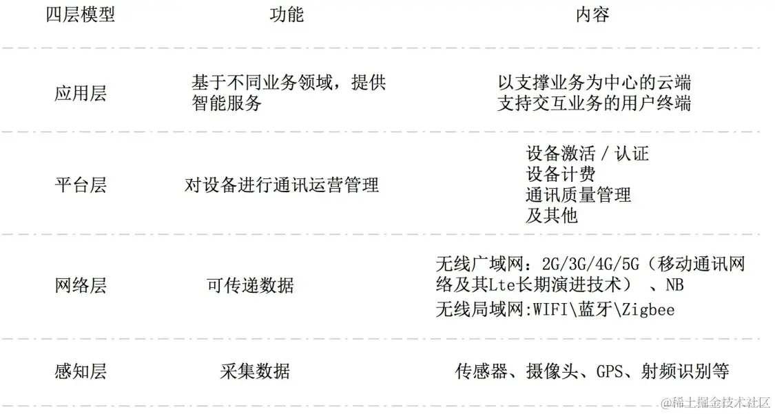 传统的物联网架构可以简单地划分为三个主要层次:感知层、网络层和应用层。感知层负责采集数据,网络层负责数据传输,而应用层则涉及不同行业的应用场景。