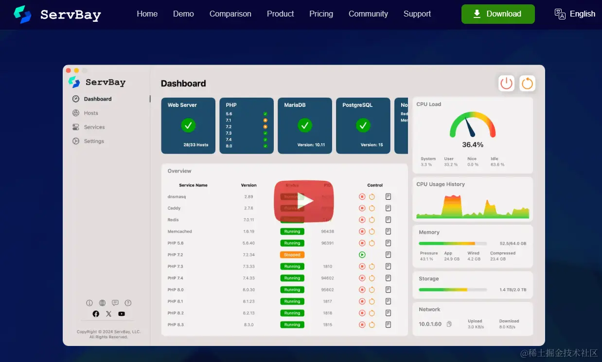 ServBay是专为macOS设计的本地Web开发环境,集成了最流行的Caddy服务器,MariaDB和PostgreSQL数据库,Redis、Memcached等NoSQL数据库,还有phpMyAdmin、adminer等数据库管理工具。它能通过本地DNS服务简化网络请求的路由和管理。此外,ServBay还包括一个独立的开发包,允许开发者重新编译和集成独特或自定义构建的软件,极大地增强了Web和PHP开发的流畅性和效率。