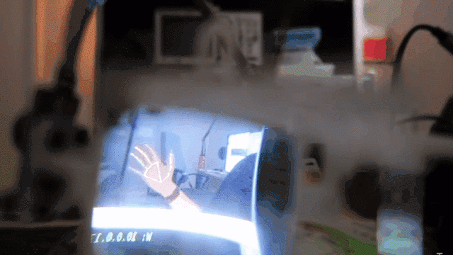 通过树莓派Zero W,对手势信息捕获。图像信息传输到电脑中,由手势识别AI进行处理。之后再传达给装置,发出对应的手势命令,并同步在投影图像中。