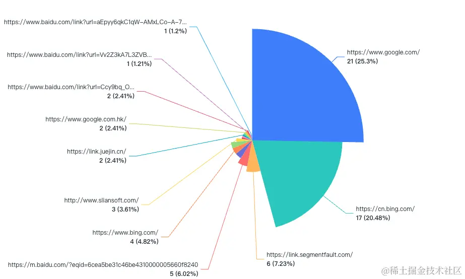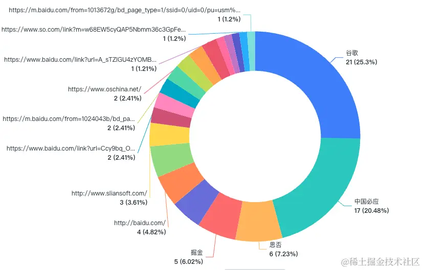 这个字段是无埋点获取用户来源的比较直观的方式,我们可以通过饼形图来展示。