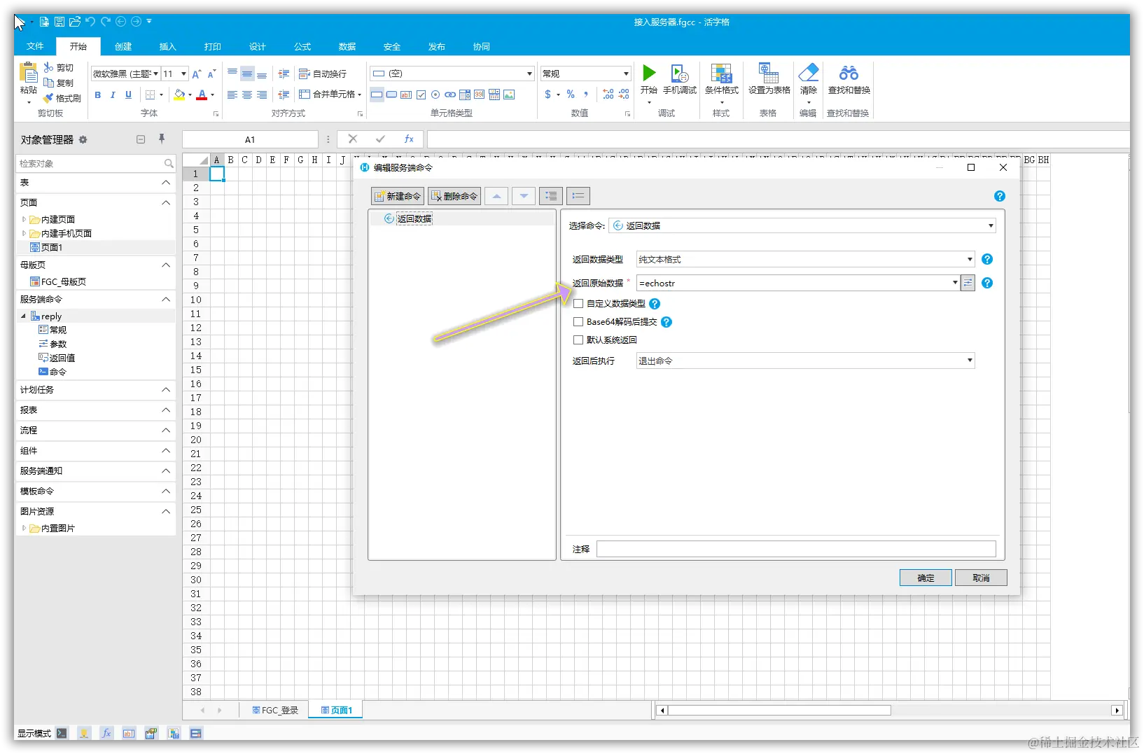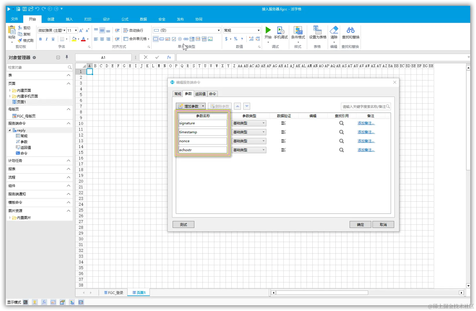我们可以在活字格设计器中创建一个任何人可以访问的支持POST/GET请求的服务端命令即可(这个服务端命令便是之后答复微信消息的服务端命令)。