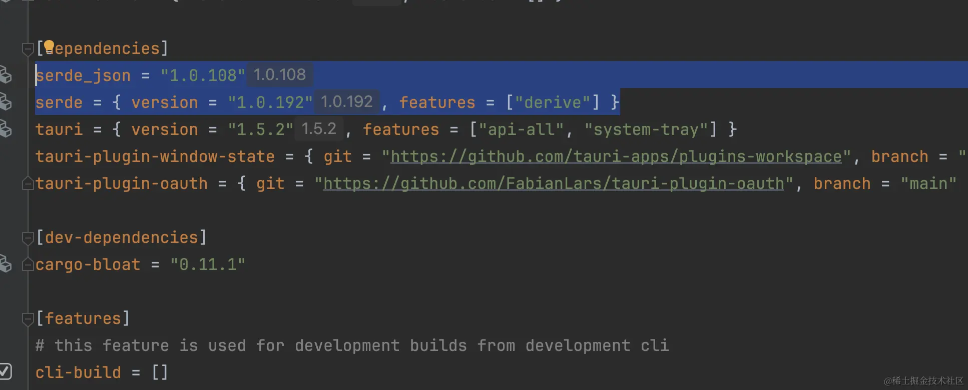 在Cargo.toml添加对serde,serde_json库的依赖: