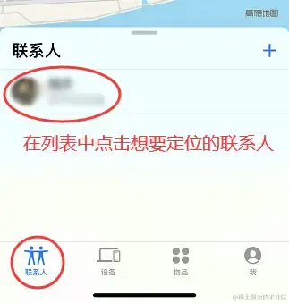 Step 2:在列表中点击想要快速定位的联系人,点击它就可以在地图上查看对方的iPhone位置。