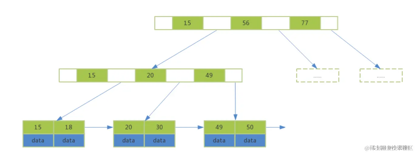 2.叶子节点包含了所有的索引值和data数据