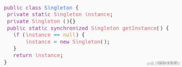 第一种,是最简单的实现,通过延迟加载的方式进行实例化,并且增加了同步锁机制避免多线程环境下的线程安全问题。(如图)
