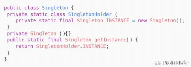 像这种写法,把INSTANCE写在一个静态内部类里面,由于静态内部类只有调用静态内部类的方法,静态域,或者构造方法的时候才会加载静态内部类。