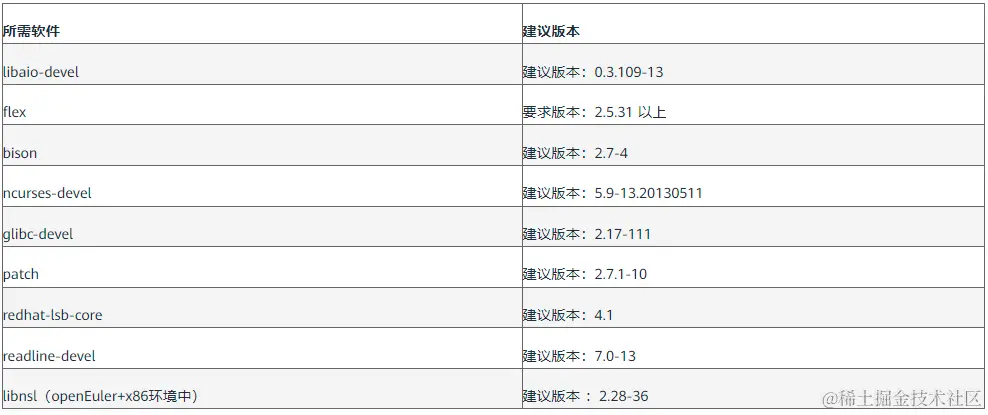 openGauss的软件依赖要求如表3 软件依赖要求所示。