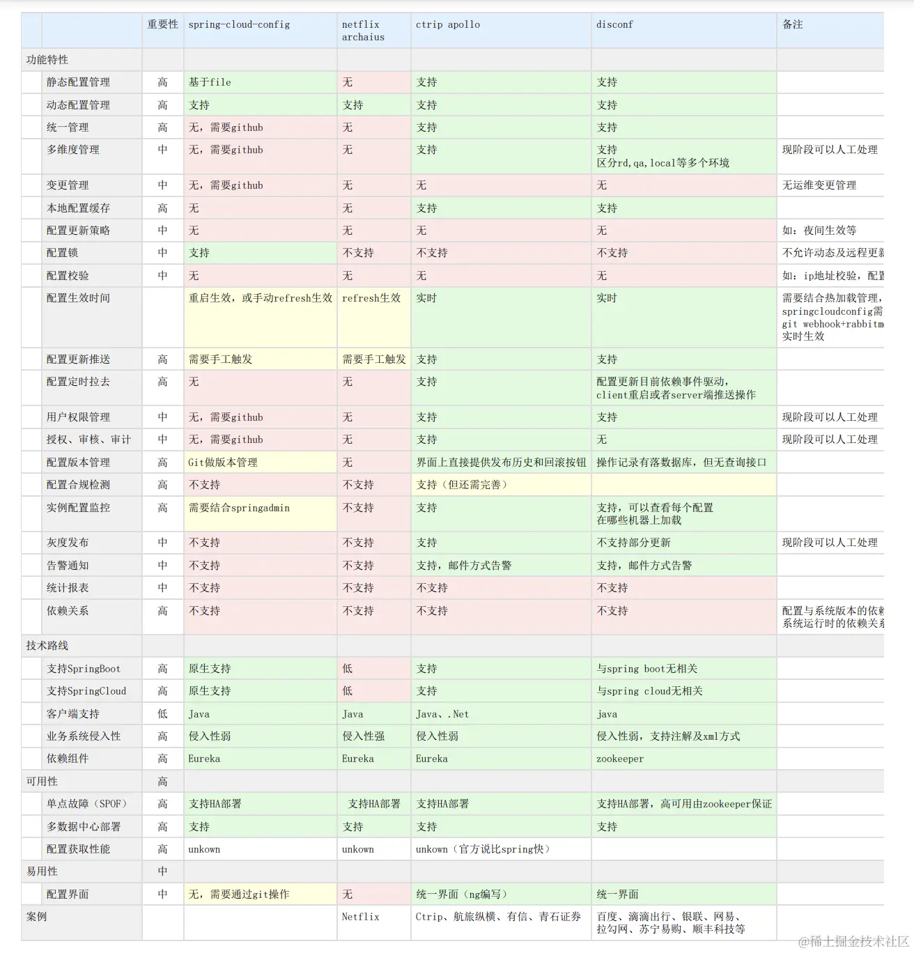 首先看下开源配置中心对比:Apollo > Disconf > Spring Cloud Config > Netflix Archaius