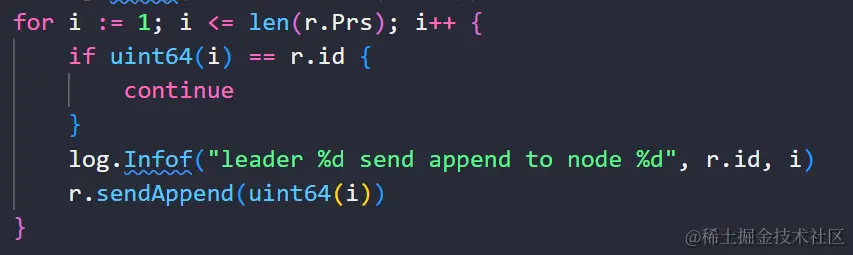 这里是少了一条 leader 发送给别的节点的,这里把 i<len(r.Prs)改成 i<=len(r.Prs)
