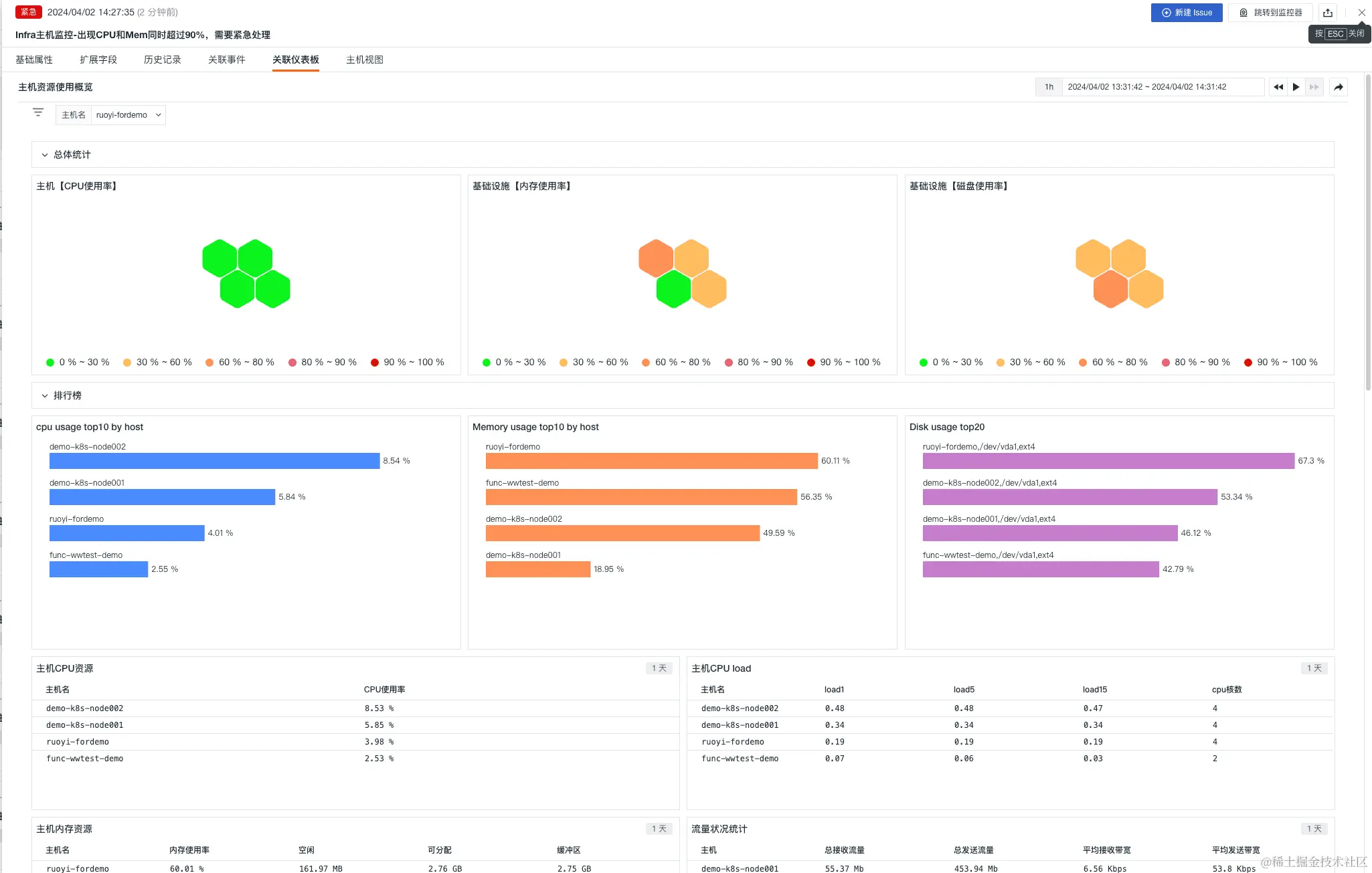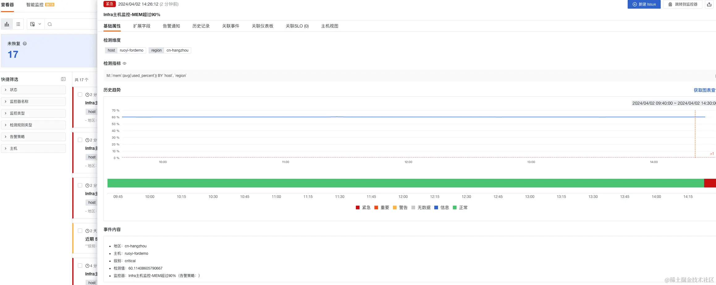 - Infra 主机监控-MEM 超过 90%