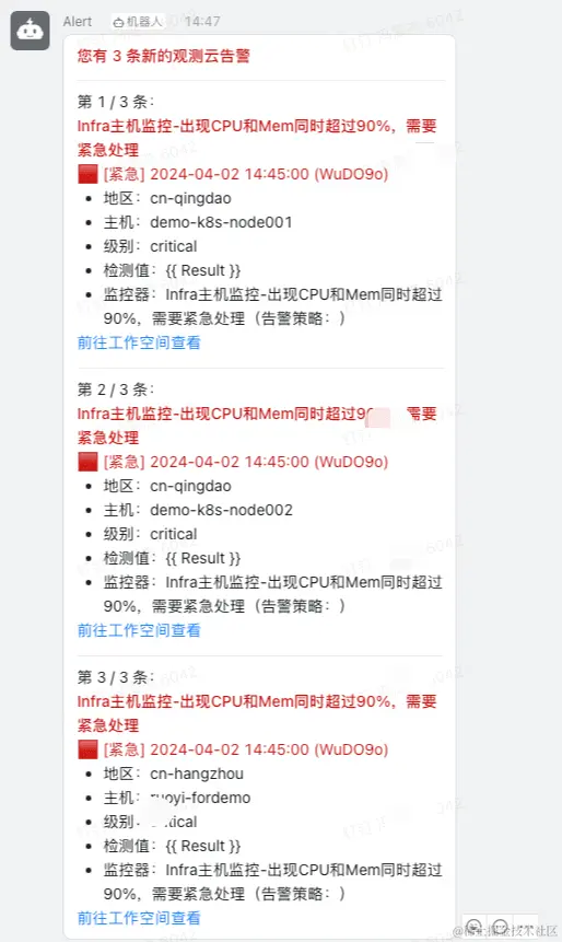 注意:不同告警通知对象支持的 Markdown 语法不同,例如:企业微信不支持无序列表。