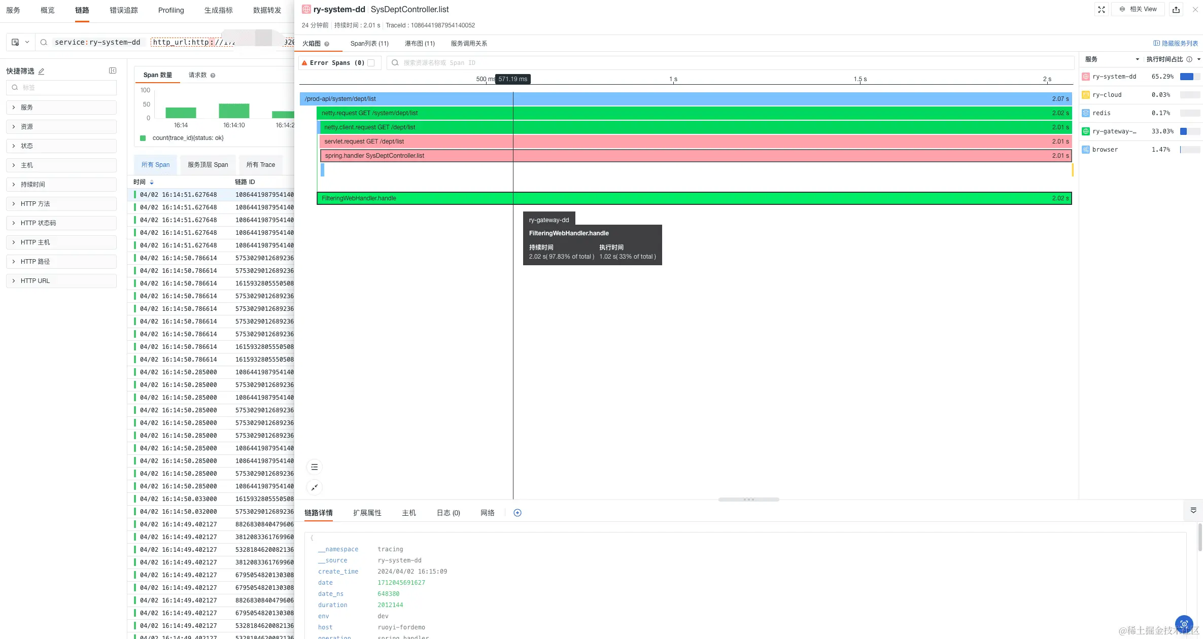 - 查看链路火焰图