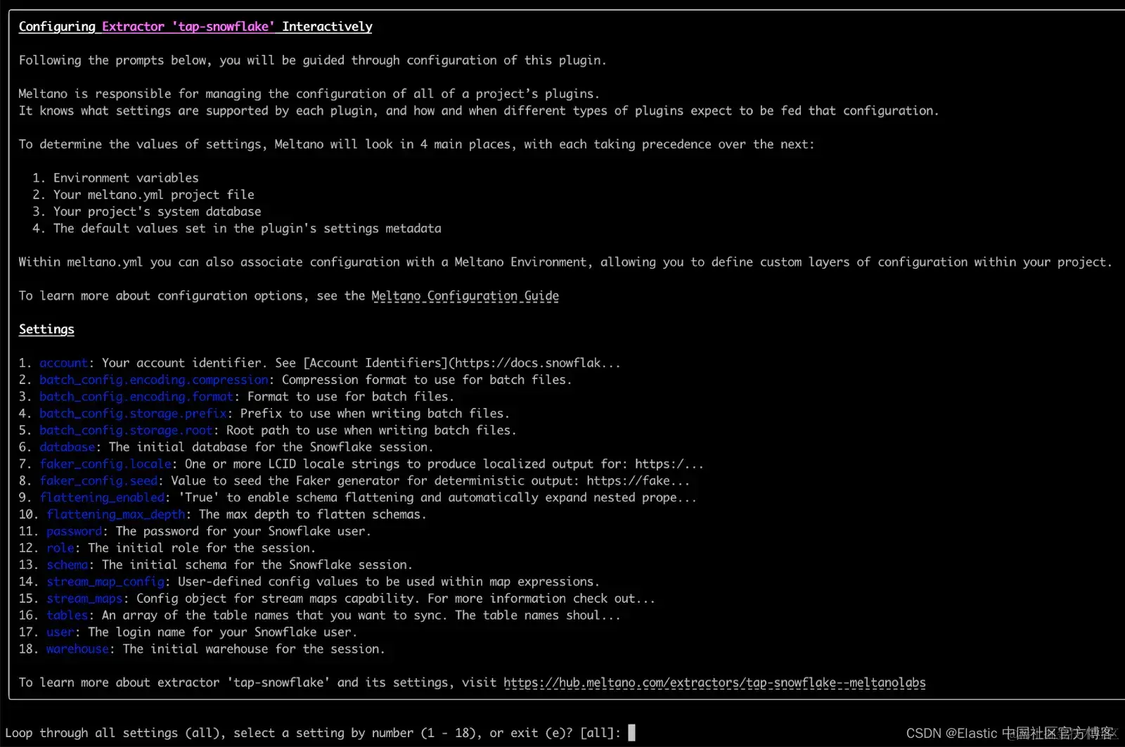 meltano run tap-snowflake target-elasticsearch