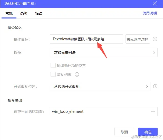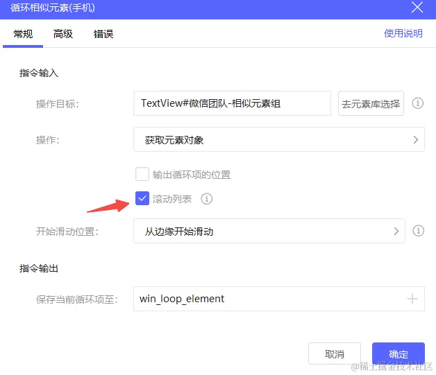 4. 在使用循环相似元素的时候,勾上滚动列表,保证完整获取循环列表