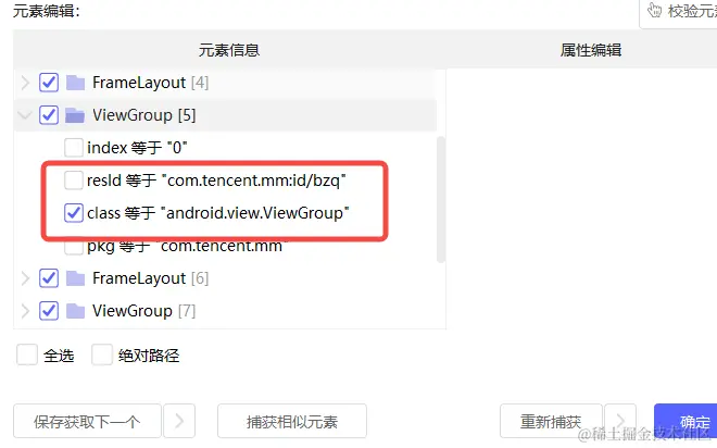 3. 手机微信中捕捉的元素默认查找条件是resId, 但是会变化,下一次可能用不了,将其改成class,如图: