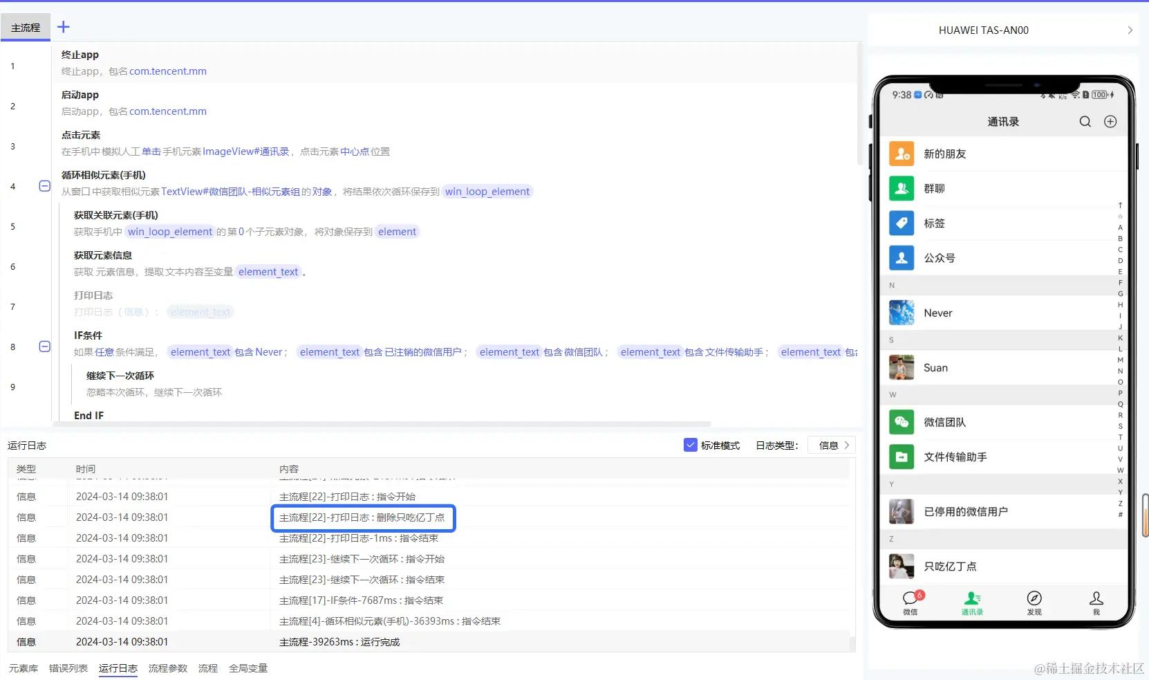 2. RPA工具精准识别单向好友并删除,省去了手动一个一个查找,准确简单高效,让人感觉到解脱和清爽,轻松无比。