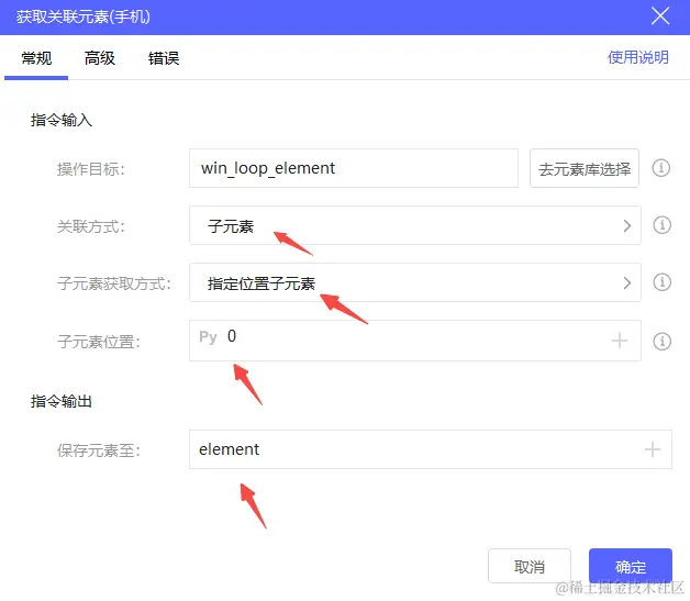 指令【关联元素】,获取子元素对象,昵称在第一个子元素上