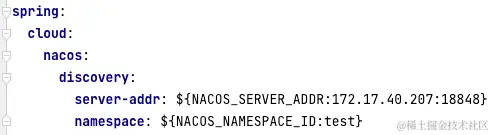 3、yml配置文件中配置nacos注册中心地址