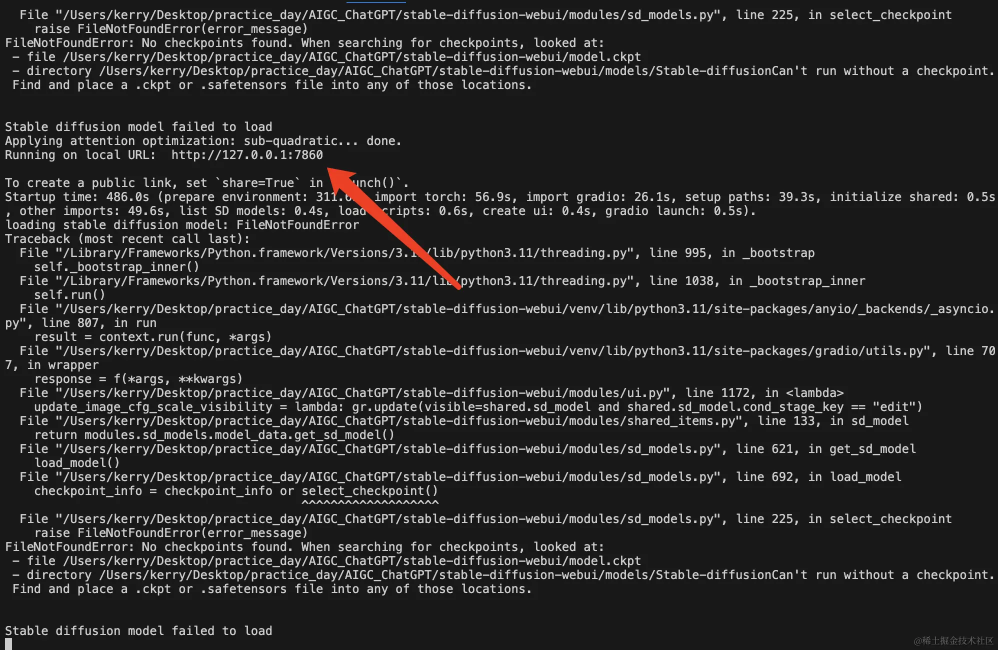 启动成功之后,会开启一个本地web服务,下面提示报错,是因为没有模型。