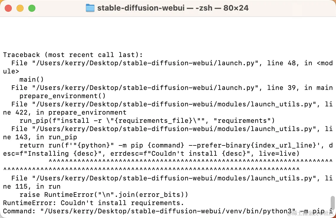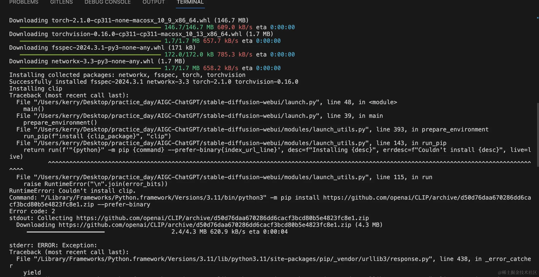 File "/Users/kerry/Desktop/practice_day/AIGC-ChatGPT/stable-diffusion-webui/modules/launch_utils.py", line 143, in run_pip