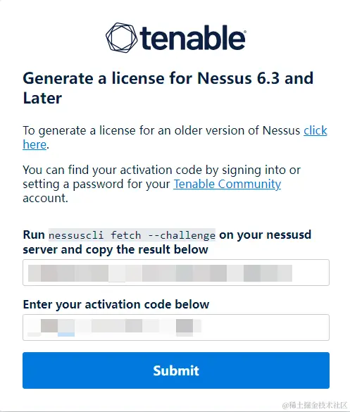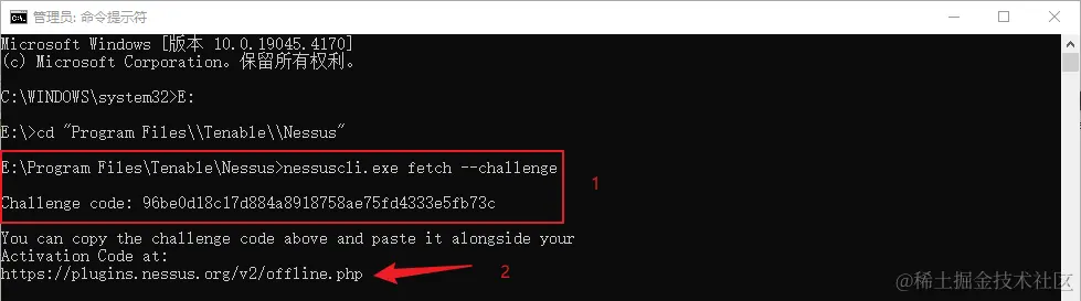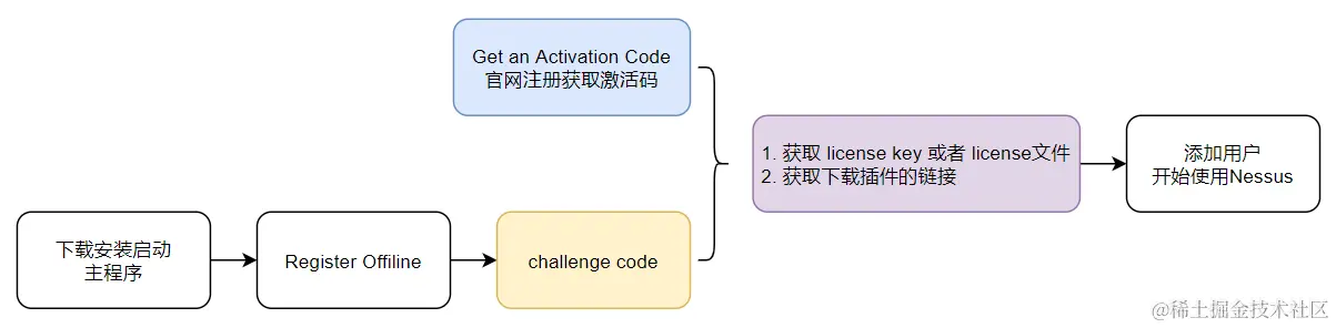 访问 plugins.nessus.org/v2/offline.…,用Challenge code和Activation Code获取许可证文件。