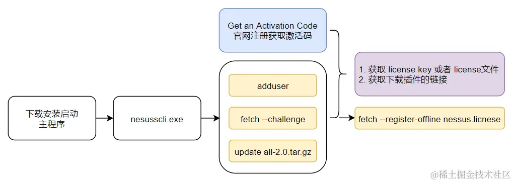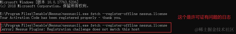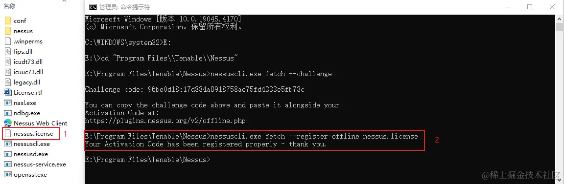 将下载的nessus.license文件放置到安装目录,执行注册命令: