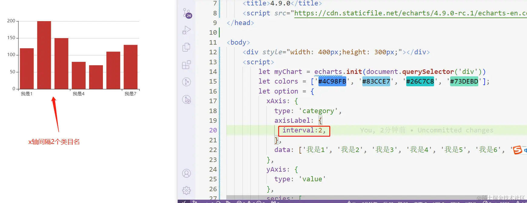 interval:2, // x轴间隔2个类目名