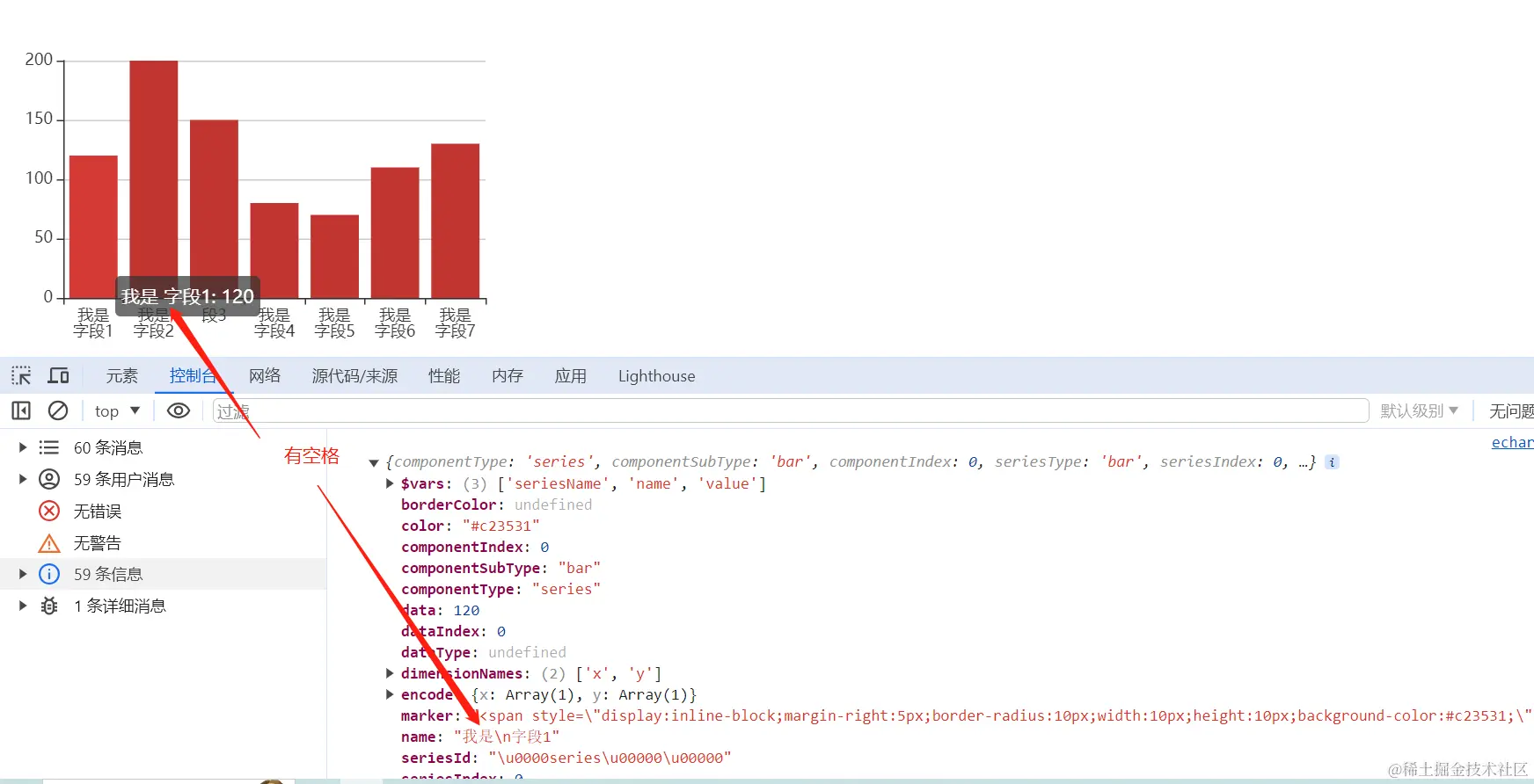 在data中通过\n换行会在 tooltip 会产生一个空格【不推荐有有副作用】