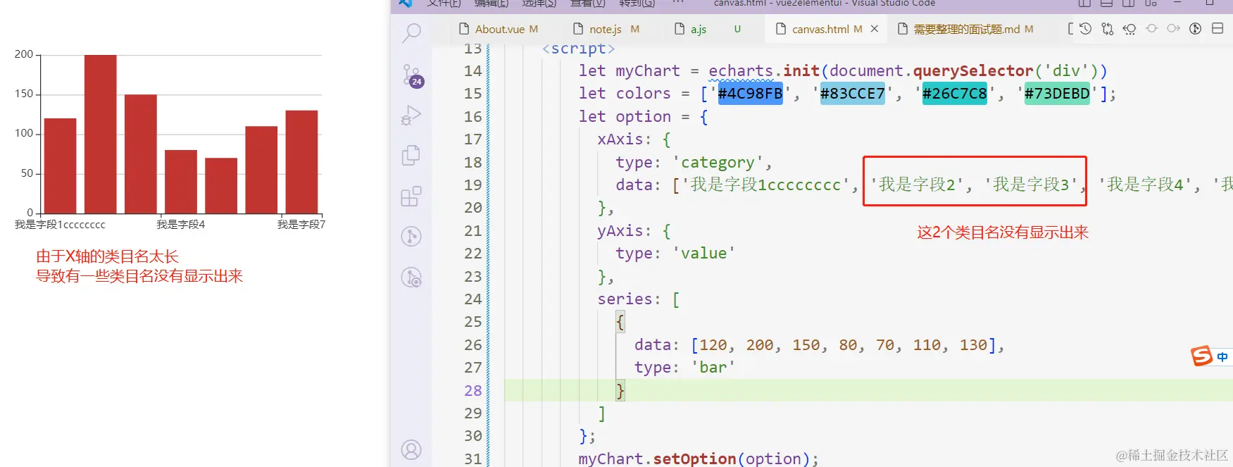 在柱状图中,X轴类目名如果数据太长;