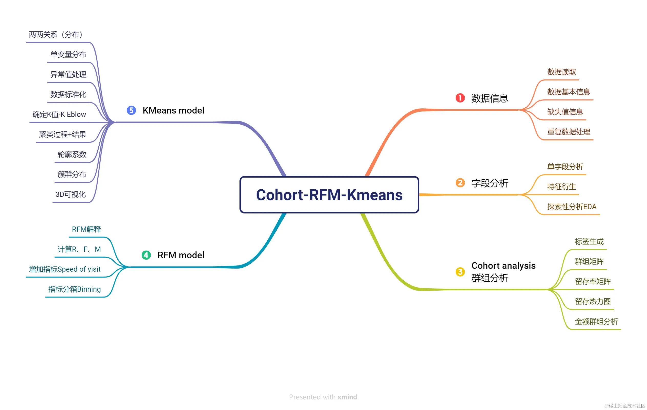本文介绍用户群组分析Cohort analysis、RFM用户分层模型、Kmeans用户聚类模型的完整实施过程。