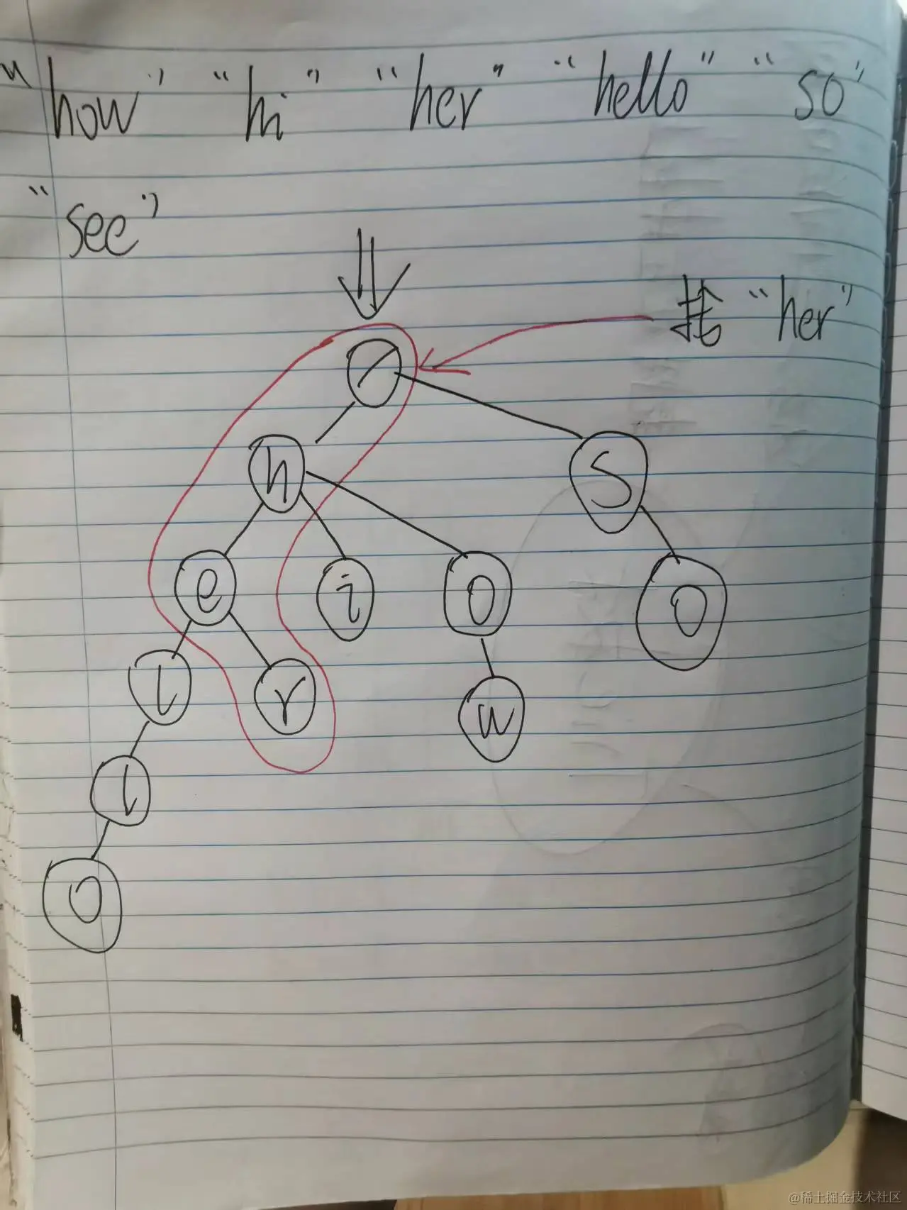 找线头,可以类比为处理一组字符串里的“公共前缀”,如图所示: