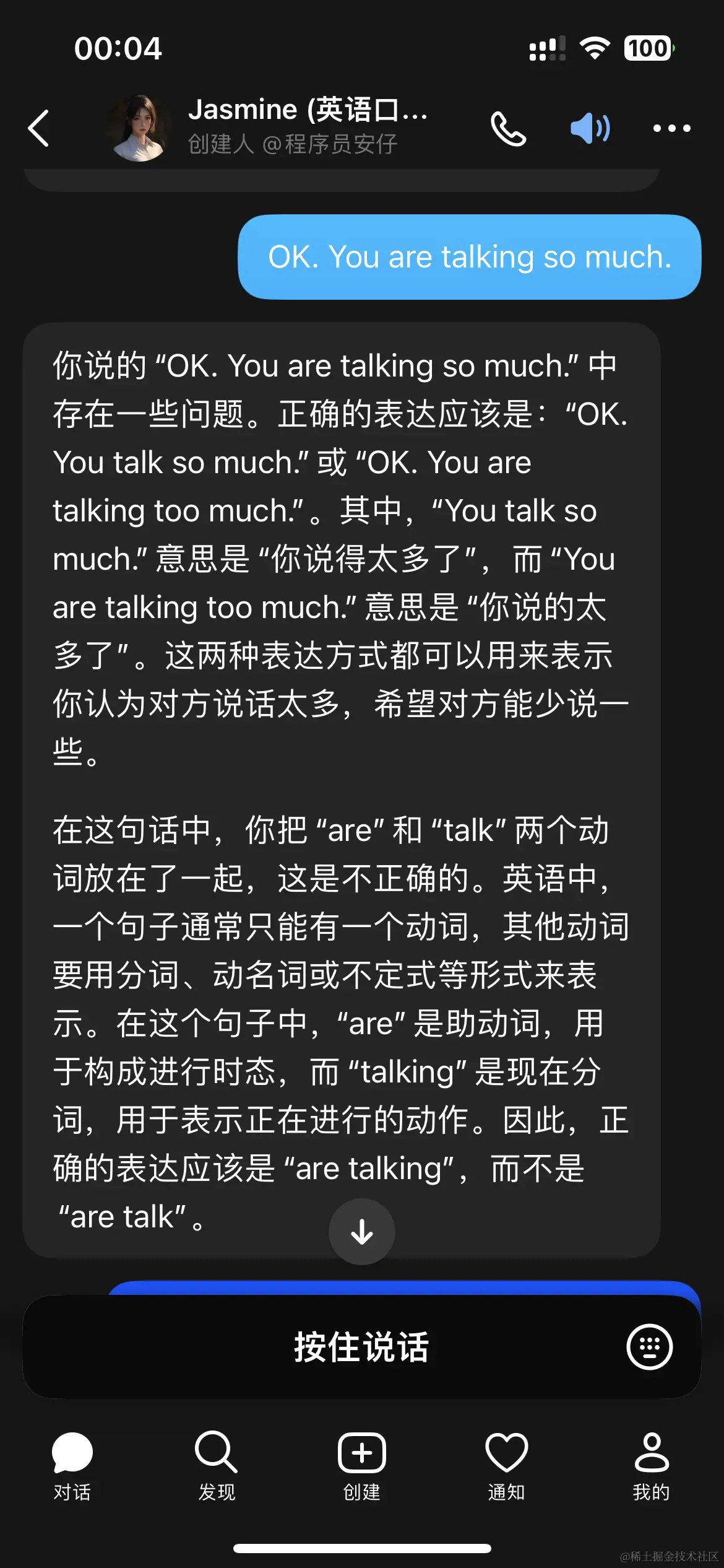 这个 AI Bot 还是建议直接使用豆包的语音通话的方式进行,效果更好。