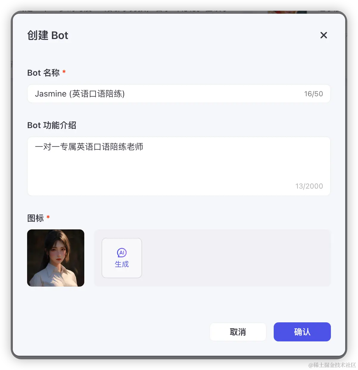 - 一个 AI Bot 的创建就完成了,接下来我们来细化其功能。