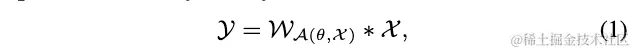 在如动态裁剪、动态卷积等动态网络中,卷积核根据输入进行动态参数化,这样的卷积可表示为: