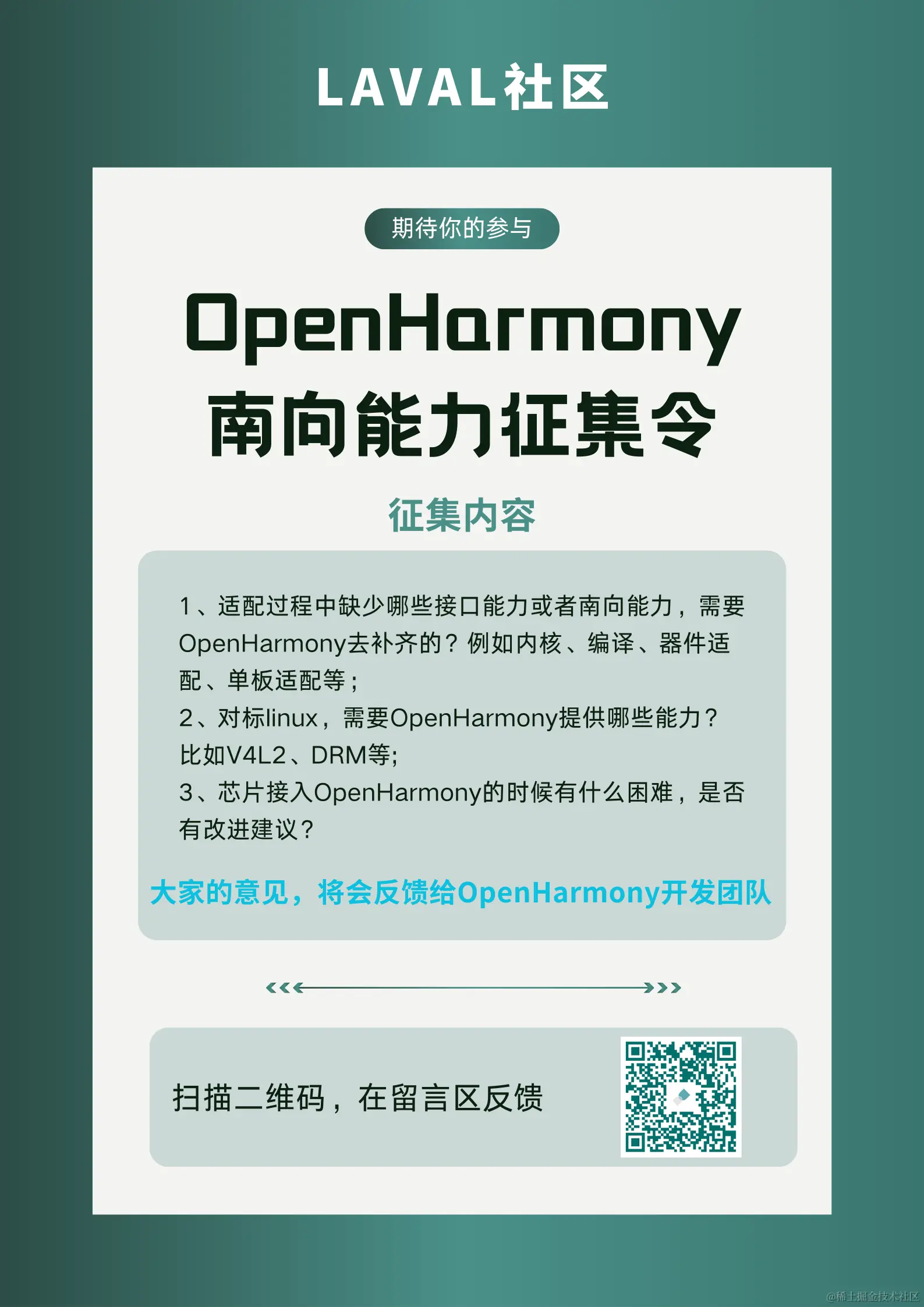 大家的意见,会反馈给 OpenHarmony 开发团队。