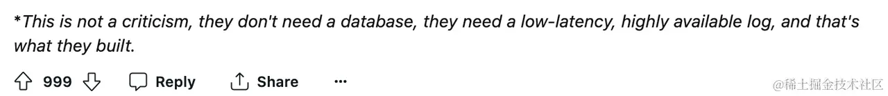 还有网友认为,可以理解。他们不在乎丢数据,这就排除了数据库 99% 的 use case 了。