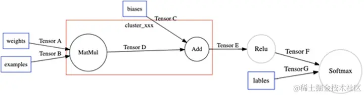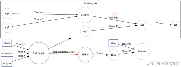 XLA把这个区域定义为一个Cluster,作为一个独立的JIT编译单元,计算图中通过Node Attribute标示