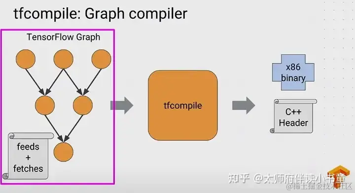 具体而言,得先给Tensorflow的图描述转成一种XLA的中间表达形式,然后在往后进行编译优化。 先转成XLA的图表达之后,还要再往下层转,整个路径是Tensorflow->XLA->LLVM(开源编译框架)->各种硬件系统的汇编->机器码,如下图所示。