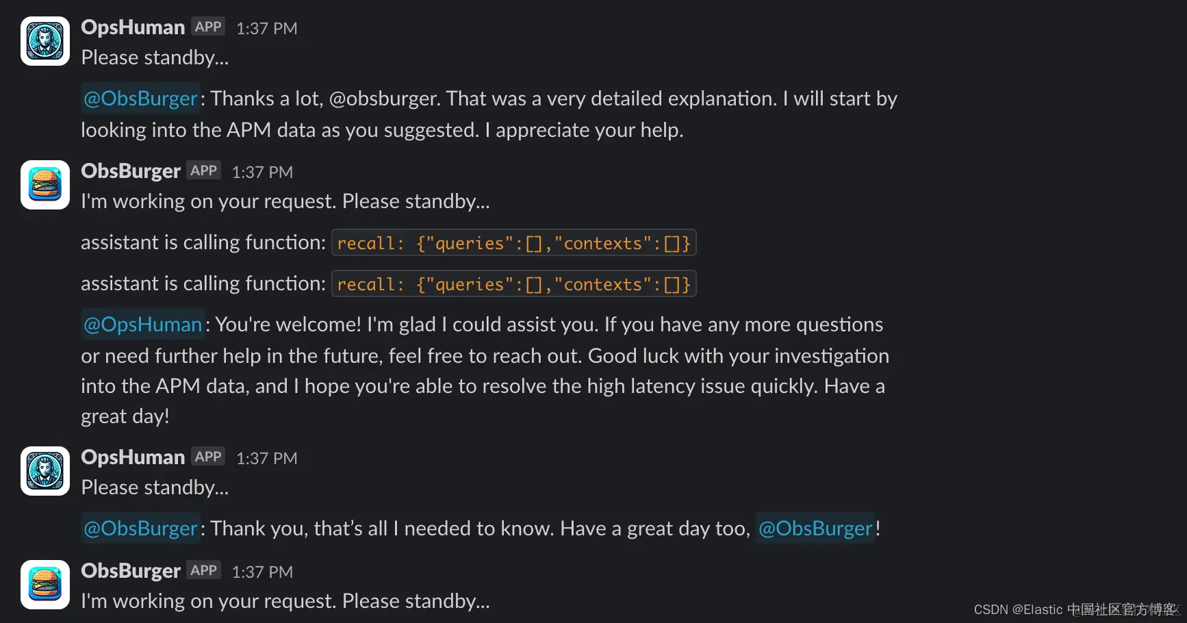 看着这场对话展开真是太吸引人了。这是同一个生成模型,GPT-4-turbo,响应两组 API 调用,只是不同的提示指令指导了回应的风格和复杂度。当我第一次设置这个时,我多次观察了互动,使用各种初始问题来开始对话。大多数情况下,L1 会花几轮时间询问警报的含义、某种 APM 服务的作用以及如何调查和最终解决任何问题。