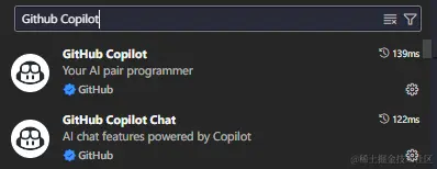 点击左侧 Extensions(扩展) ,搜索 Github Copilot,把这两个插件都装上。