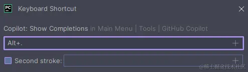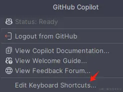 搜索框输入 Copilot 进行过滤,定位到要修改的选项,双击,点击 Add Keyboard Shortcut 添加快捷键: