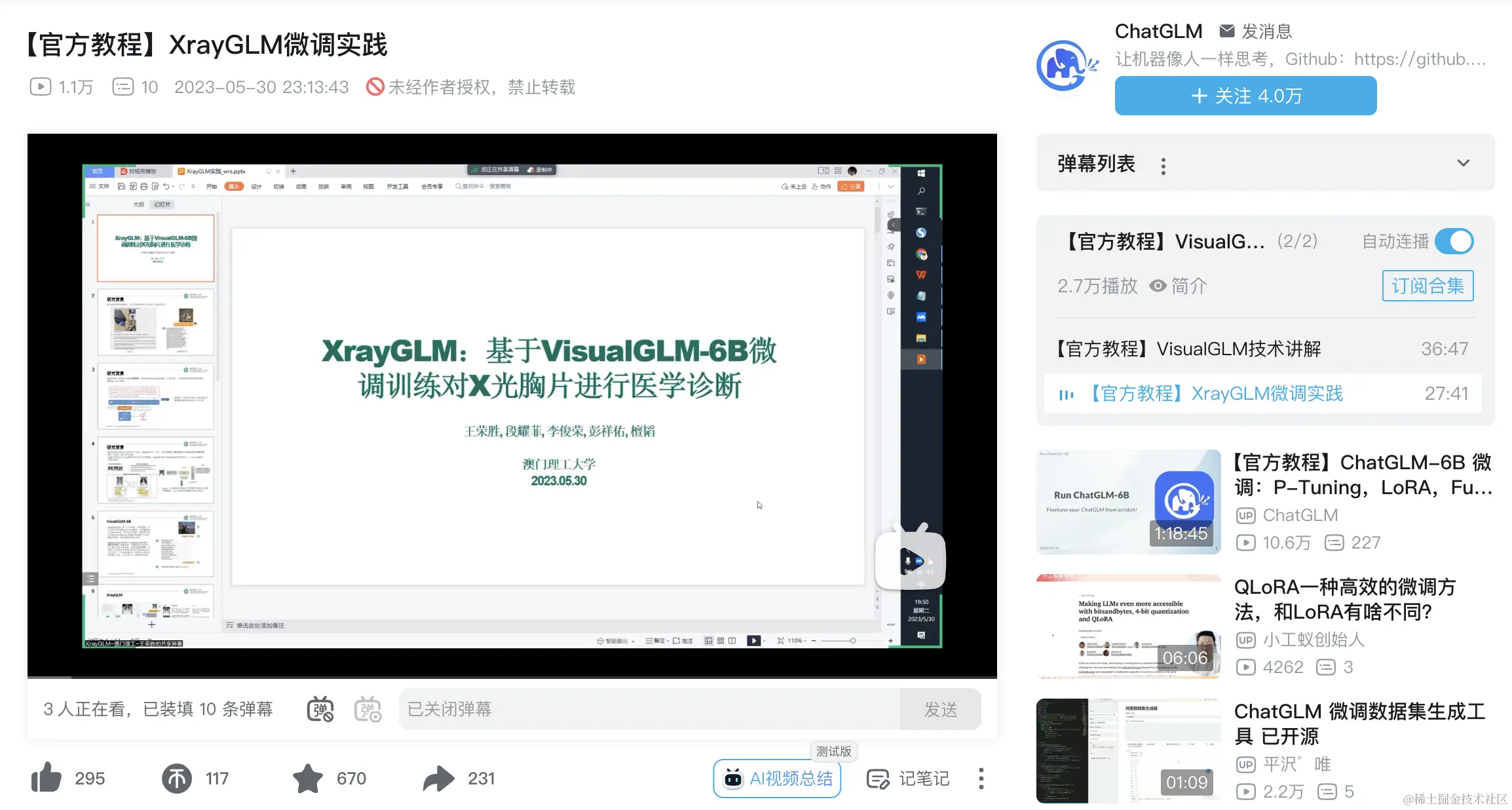 XrayGLM 团队也分享出了 XrayGLM 的微调实践教程,感兴趣的开发者可以前往图中频道或直接访问项目仓库了解更多详情:gitee.com/WangHaoyuuu…